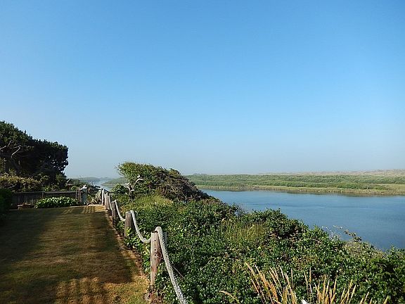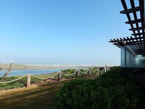 RIVER FRONTAGE, CLASSIC OCEAN VIEWS make this 2 bedroom, 2 bath older house an ideal place to call home. Approx 1440 s/f, double detached garage, decks, fenced and gated yard of .9 acre. Large living room + family room with gas woodstove, FA heat, community water/sewer. Popular location with easy access to shopping and services. See photos and details at sueforbes.com............................................$429,000
