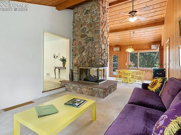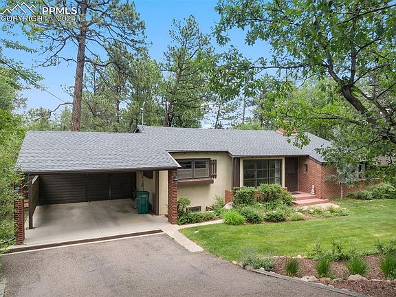 What a great opportunity to live seconds from Cheyenne Canyon, 7 Falls, numerous hiking and biking trails, the Broadmoor Hotel, award winning Cheyenne Mountain District 12 schools and so much more! Pine Grove is a quiet and secluded street with beautiful pine trees and unique homes. This home backs up to a beautiful city owned park. The windows create a seamless connection between the indoor and outdoor spaces, allowing natural light to the interior and providing stunning views of the surrounding nature. Whether you're enjoying a cup of coffee in the morning or relaxing in the evening, the beauty of the outdoors is always just a touch away. Enjoy bird watching from the back deck off the master or the deck off the dining area. The main level offers a living room, family room with a 3 sided fireplace with stone collected from Cheyenne Creek and walk out to a side patio. The dining area boasts a walk out to the back deck. The large master bedroom also offers a walkout to a private deck. An additional bedroom completes this level. The basement offers 2 bedrooms, a large laundry and storage area, and an office or craft room. Make this home your own by adding your own soft remodel, such as updating the kitchen with modern appliances, refreshing the bathrooms with new fixtures, and adding your personal touch with paint and decor. With its prime location and stunning natural surroundings, this home is the perfect canvas for you to create your dream living space. NEW ROOF!