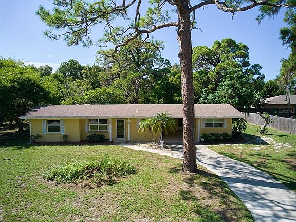 ALMOST HALF AN ACRE WITH A GUEST HOUSE! This West of Trail residence offers a great opportunity to rent with income potential, about 1-mile to Siesta Key Beach. The prime location resides alongside multi-million-dollar bayfront homes. The main house has 2 bedrooms and 2 baths, and the attached one-bedroom guest house has its own bathroom and kitchenette. Ceramic tiled flooring flows easily throughout the main living area, with brand new carpet in the bedrooms. An eat-in kitchen has lots of neutral cabinetry and a built-in buffet with glass display and a planning center. All the appliances remain. A set of French doors open to the newly painted, covered, and screened lanai with a garden overlooking the expansive, shaded privacy fenced backyard. Another set of French doors gain access to the primary bedroom from this lovely outdoor space. Complete with crown moldings, double closets, new carpet, and a personal bath with vintage characteristics. The guest bath also features some of the same qualities. The front bedroom is complete with a closet, ceiling fan, and new carpet. Enter the carport directly from the main home to get into the laundry room with a front-load washer and dryer (included). Paver steps and outdoor lighting illuminate the path to the side-entry guest house. This space is light, bright, private, and conveniently attached to the main home. Its diagonal tiled flooring blends an open space with the kitchenette and bath. As a bonus it has its own heating and cooling unit. The large outbuilding in the back has plenty of extra storage and does convey. The oversized treed lot has plenty of room for boat, RV parking or both! The location is about a half block to the historical Philippi Estate Park where one can launch and enjoy kayak waters. It is also perfect for accessing the Siesta Key Marina and a local spot (CB'S Saltwater Outfitters) known for boat rentals and fishing charters. It is also very near to the seasonal Farmer's Market, Gulf Gate Public Library, shops, and dining at Sarasota Pavilion. As mentioned, it is close to area beaches like the white sugar sands of Siesta Key, championship golfing, Westfield Sarasota Square and its theatres, Potter Park and Selby Aquatic Center as well as many other recreational venues, the YMCA, year-round Legacy Trails and more! One year minimum