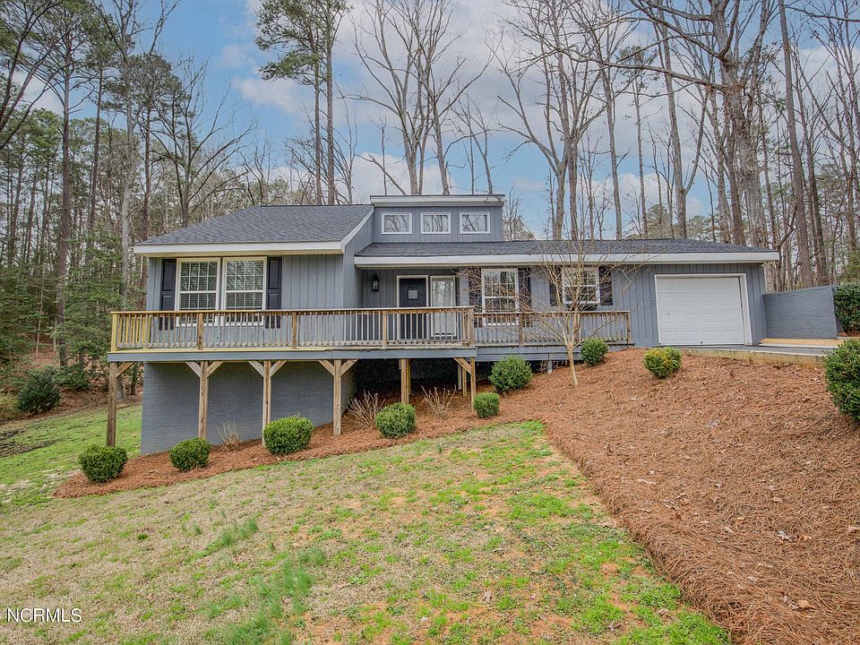 Welcome to this charming 3 bedroom, 3 bath home nestled in the gated community of Carolina Trace. The large front porch welcomes you into an open floorplan featuring a cozy wood-burning fireplace and luxurious LVP flooring throughout. The master suite boasts an updated bathroom with a spacious walk-in shower. The basement offers a finished bonus room, a full bathroom, and an additional bedroom, providing ample space for guests or a growing family. Enjoy relaxing evenings in the enclosed porch, complete with a ceiling fan for added comfort. This home offers both elegance and functionality in a desirable gated community setting.