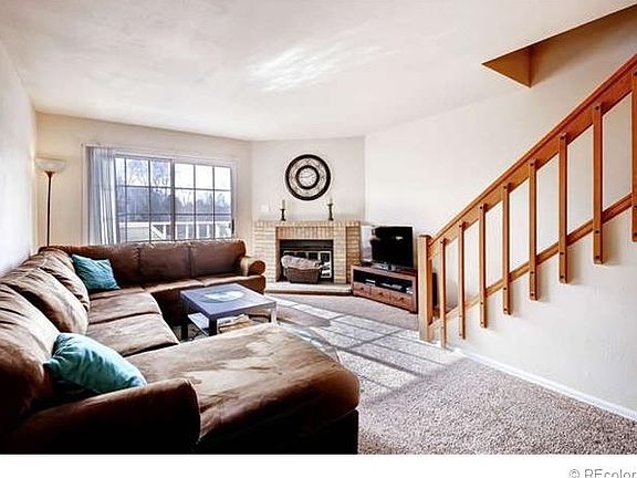 This home shows pride of ownership! New carpet June 2015! New kitchen flooring 2015! New paint June 2015! Updated appliances! Updated plumbing in upstairs bathroom and kitchen sink! Vaulted ceiling in master bedroom with skylight! Brick fireplace in family room! Laundry hook-up and storage in basement! Attached one car garage! Easy access to Highline Canal, Cherry Creek Pathway, shopping, parks and restaurants! Balcony! Pool community! This one won't last long!