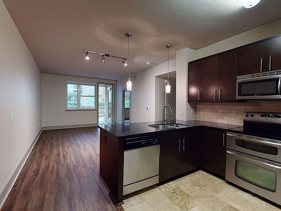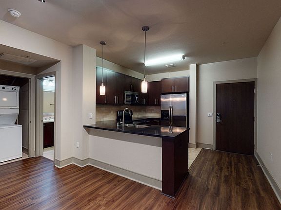 - Exterior features: 11 ft. ceilings, Balcony, Business Center, Closet built-ins, Dual Bathroom Vanity *, Flexible work from home space, Package Receiving, Pet Park, Resident app, Soaking Tub, Stainless steel appliances, TV Lounge, Theater, Travertine Countertops *, Two conference rooms, Wi-Fi (in common areas), Wood-like Flooring