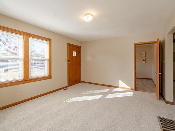 Conveniently located on Evansville’s Eastside, this all brick ranch is move-in ready. Fresh paint and flooring flow throughout the interior of the home. Upon entering, the great room offers a generous amount of natural light and a coat closet. The two bedrooms share a full bath with tub/shower combo, medicine cabinet, and built-ins. From the eat-in kitchen, step down into the bonus living area. This room features a wall of storage and is easily accessible from an additional entrance off the carport. Step off the back patio into the fully fenced backyard featuring a storage shed and a detached two-car garage with workshop area. Additional updates include: new roof 5/22, new HVAC 9/22, painted exterior, a new vinyl section of the fence, and windows in 2010. Do not miss this well maintained home.