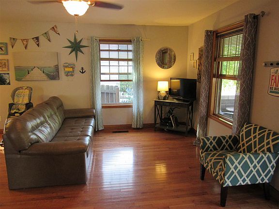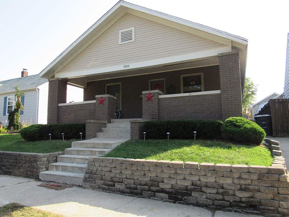 This charming home is sure to catch your eye! At first glace you'll see the large covered front porch with view of the park across the street. This open concept all brick home features beautiful hardwood floors in the living and dining areas. The kitchen is sure to please with its maple cabinetry and all appliances. Three bedrooms, one of which has a brick fireplace and could be used as an office space. Additional updates include new roof in 2017, windows, interior remodeled, electrical and plumbing all updated in 2012 and new gutters to be installed October, 2017! Large basement, great curb appeal and a great location!
