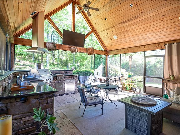 If you enjoy entertaining, this home is for you! This welcoming 4 BR, 3 BA residence boasts a fantastic layout, including a bonus room for added versatility. Entertain with ease in the amazing outdoor living space, complete with a fully-equipped kitchen, ideal for hosting gatherings. Relax in the screened-in porch featuring a cathedral ceiling, or cozy up in the spacious great room by the gas logs fireplace. The owner's suite offers luxury with an en suite bath featuring a soaking tub, shower, and walk-in closet. Upstairs, discover a bonus room with its own full bath. Enjoy peace of mind with a new roof installed in 2022 and a brand-new exterior HVAC unit from summer 2023. Neighborhood amenities include two pools, playground, plenty of sidewalks and seasonal events for residents. Welcome home to comfort, convenience, and style! Sellers are in the process of moving out.
