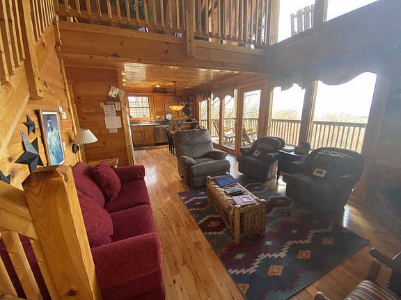This view is incredible! Unobstructed views of Pigeon Forge to include the Ferris Wheel!!!! This cabin has boasts a fully equipped kitchen with all appliances, fully furnished, decorated, hot tub, pool table, foosball table, and did you see the view? 2 bedroom 3 bath but has 3 established sleeping areas that accommodates a total of 8 people comfortably. Conveniently located between Gatlinburg and Pigeon Forge so you'll have easy access to both exciting areas. You'll enjoy relaxing after a fun filled day in front of the gas log fireplace in the open great room with towering ceilings.