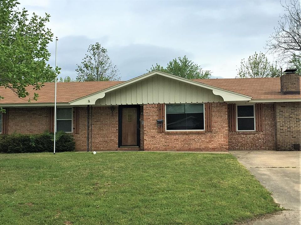 Plenty of room in this brick 3 bedroom, 2 1/2 bath home! Home sits on a corner lot and features 2 separate living spaces - one with rock fireplace and half bath, eat in kitchen and large utility room. You'll enjoy outdoor living in the over sized back yard and covered patio. Terrific location close to schools, stores, restaurants and I-49!