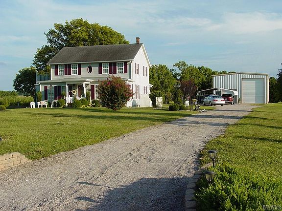 Beautiful farmhouse on an acre. Remodeled about 10 years ago. New kitchen, bathrooms, insulation, and drywall. Master downstairs with master bath and TV room off master. Kitchen with dining area, sun room off dining area. Large deck on the back of the house. The upstairs has kitchenette, two bedrooms, a living area and a full bath. It also has a private entrance with stairs on the side of the house. Large detached garage ( 30' x 50' ) with a tall garage door for an RV and a finished living area with storage over top. Refrigerator, washer, and dryer stay. Appraised in 2018 for $360,000.