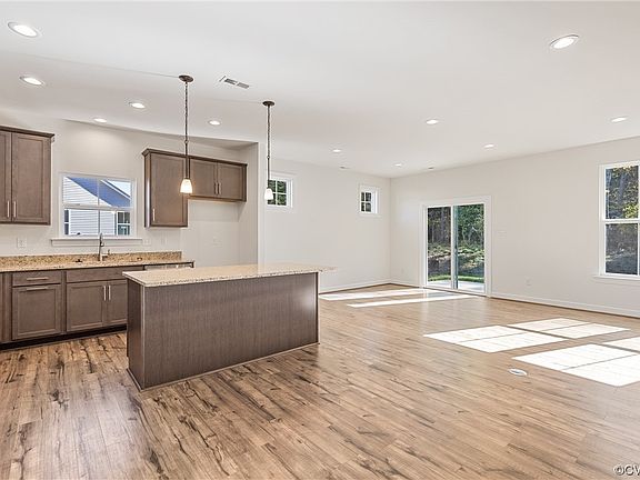 READY SEPTEMBER! This beautiful Brook Designer Home with stunning design finishes offers the best in one-level living. As you enter through the foyer, you'll find the chef's kitchen complete with center island, gas cooking, double ovens, granite counters and pantry space. The island overlooks both the dining area and family room (complete with fireplace). Just off the main living area is the Primary Suite with tray ceiling, WIC and private bath with walk-in shower. Two additional bedrooms, full bath and laundry room with designer tile completes the tour. Enjoy outdoor living on your patio space! Twin Rivers is part of Meadowville Landing, a beautiful riverfront community, located on the James River. The resort-style amenities include a water park & pool, community ponds for fishing, river walk & community dock. In addition to the nearby amenities in Meadowville Landing, Twin Rivers residents will also enjoy the planned bocce ball & pickle ball courts! And with close proximity to 295, 95 and Rt 10, you are only min away from everything Richmond has to offer! (HOME IS UNDER CONSTRUCTION - Photos & visual tour are from builder's library & shown as an example only. Options will vary).