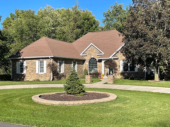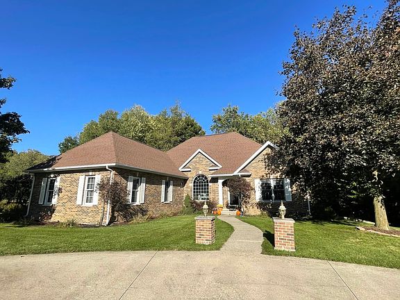 Welcome to your private sanctuary! This magnificent 4 bedroom, 3 1/2 bath ranch style home on 2.56 acres is a true gem! Nestled amidst a gorgeous lot with mature trees and a winding creek, it's the perfect retreat for those who appreciate nature's beauty and tranquility. Enjoy the warmth of a cozy gas fireplace in the relaxing living room. Host dinner parties in the elegant dining room with dramatic pillars and tray ceiling. The functional kitchen features a breakfast nook with gorgeous backyard views and access to the upper level deck. The bedrooms are designed for comfort and convenience, boasting well-organized closets. The Jack and Jill bath with double sinks and separate tub/shower room is perfect for the family's needs. Enter the master suite with a tray ceiling and french doors to a private balcony. The ensuite is your private oasis and includes a jetted tub, separate shower and walk in closet. The fully finished walk-out lower level is a dream with a huge family room/game room, 4th bedroom, wet bar, and fully equipped second kitchen. Perfect for entertaining! This home is adorned with arched doorways, six-panel doors, 9 foot ceilings, pretty trim throughout. Well maintained home: Roof-2016; Furnace and central air-2018; Water heater-2015; Well pressure tank-2023. The 2 car attached garage is finished with ceiling fans, new garage doors and openers. There is a separate additional 1 car garage for even more storage. The convenient circle drive and brick pillars set this home apart and add a touch of elegance to the exterior. The home is a beauty, but wait until you see the outdoor space, a birdwatcher's delight! There's plenty of multi-level deck space to enjoy the outdoors and views of the well-manicured lawn. The lower clearing is perfect for camping, a fire pit or just enjoying the sounds of the trickling creek. This home is perfectly located between Dixon and Sterling in a small rural subdivision.