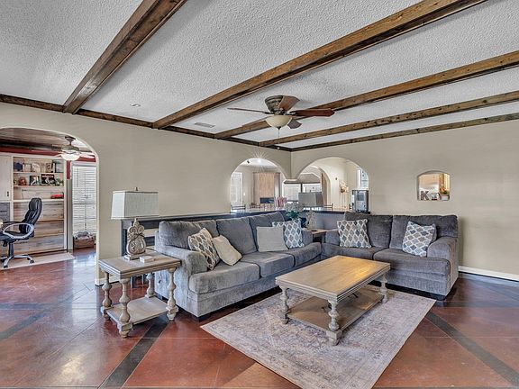ENJOY SERENE COUNTRY LIVING IN THIS 3 BEDROOM/2BATH HOME NESTLED ON 2 ACRES.OPEN CONCEPT.SPACIOUS GREAT ROOM WITH WOOD BEAM CEILINGS & STAINED /SCORED FLOORS.GALLEY KITCHEN HAS WRAP AROUND BREAKFAST BAR THAT SEATS 12.ALL APPLIANCES REMAIN.12X12 OFFICE .PRIMARY SUITE & EN-SUITE HOST BAY WINDOW & MAKEUP VANITY.BACKYARD OASIS.COVERED PATIO , COVERED PORCH,POOL & FOUNTAIN,STONE FIRE PIT,DETACHED OUTBUILDING WITH HEATED & COOLED AREA,COVERED SHOP WITH BUILT IN CABINETRY,EXTERIOR "SAFE ROOM". FENCED YARD.DON'T LET THIS AMAZING HOME GET AWAY.BOOK YOUR PRIVATE SHOWING TODAY!
