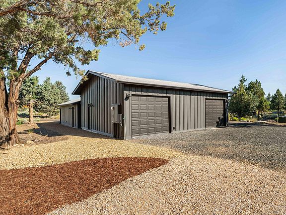 Imagine sipping coffee on a 1,200 SF stamped concrete patio, surrounded by jaw-dropping Three Sisters Mountain Views, in this custom 2,443 SF, 4-bed, 2.5-bath Single Level gem built in 2021 on 2.08 level acres. The lot is fully fenced, landscaped with sprinklers and drip system, a grand entry, electric gate, and full RV hookups. Two 850 SF heated/cooled shops—one currently utilized as a gym.