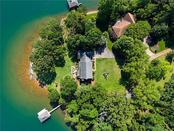 This is what Lake Keowee dreams are made of -- Bask in over 400 feet of shoreline on a private peninsula with unrivaled views of the Blue Ridge Mountains and Lake Keowee. Special doesn’t even begin to describe this piece of property. Tucked away on a private cul-de-sac, this is the quintessential lakefront retreat. Step inside to picture-perfect water views amongst a layout designed with both relaxation and entertaining in mind. The foyer leads into a spacious living area anchored by one of two charming fireplaces. Enjoy an afternoon read and an iced tea overlooking the water from the sitting area, or a quick bite in the breakfast nook before the day’s water activities begin. Every space on this main level is framed by the beauty of the water. For everything from casual summer barbecues to dinner parties, the kitchen features ease of access to the family dining room, a generous sized screened porch, and a back deck that extends the entire lakeside of the home. There is an abundance of entertaining area with every spot taking in a piece of the 270-degrees of crystal blue Lake Keowee views. When looking for the extraordinary, this is the definition of ideal lakeside living. Imagine a lakefront lot that is flat; a lakefront lot large enough for family cornhole tournaments and tossing the football. No steps or golf cart path needed to access it’s individual, deep water, covered slip dock. Simply lay out the picnic blanket and yard games then watch your family spread out across an entire acre of lakefront paradise. The home features four spacious bedrooms and three full baths. The terrace level offers a recreation room with a workshop and storage for lake toys and hobbies. An indescribable property that is the focal point of this purchase. Whether you're searching for a peaceful retreat or a primary haven, this is a property that comes along once in a lifetime. Don’t miss your chance to own a piece of something truly special… your Lake Keowee legacy starts here.