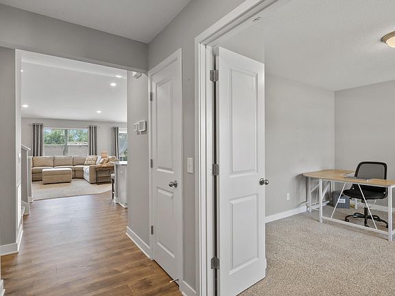 This meticulous walkout home features 4 spacious bedrooms, 3.5 baths plus an additional flex room on the main floor to be used for whatever fits your lifestyle! You will love the open & inviting main level featuring vaulted ceilings, very functional kitchen with SS appliances, quartz counter tops, spacious corner pantry, window over sink, transom windows in dining room & large island/Breakfast bar for all your entertaining of family & friends! The primary bedroom is oversized to accommodate a king bed & you will love the 2 walk-in closets. Enjoy the primary private bath w/dual sinks, ¾ shower & quartz counters. The LL is finished & offers the 4th bedroom right across the hall from a full bath & a private Living room/2nd Living area for your guests. Storage galore in this home. Wonderful curb appeal, 3 stall garage & a covered front porch.