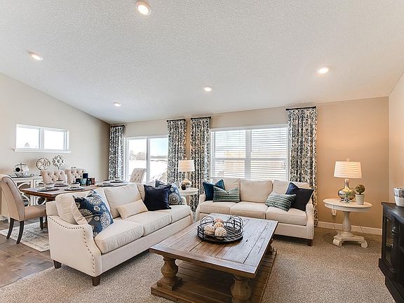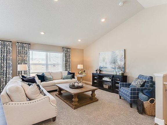 Popular Finnegan floor plan features 4 bedrooms plus additional den/study, open-concept main level with vaulted ceiling, beautiful kitchen with stainless kitchen appliances, granite counter tops, spacious corner pantry and large island for 3-4 stools. The primary bedroom has its own private bath and walk-in closet. The lower level is finished with a living room, 3/4 bathroom and bedroom. Smart home technology included. Beautiful Heartland Cottage exterior with covered front porch. The home is west facing with finished look out basement. Stop by our model home at or contact the listing agent for more information! Open 7 days a week!