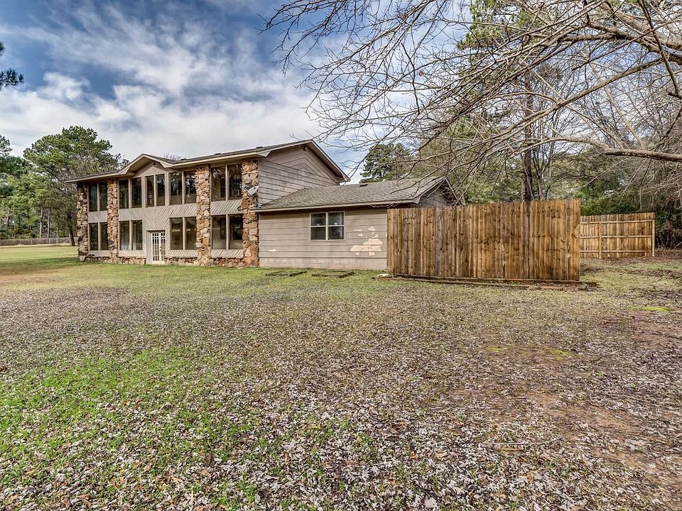 Two homes in one located in The Villages at Lake Palestine. Featuring 6 bedrooms and 5.5 bathrooms with 2 separate kitchen areas. Close to the lake with amenities including: indoor water park, marina with boat ramp, restaurant and beach, recreational center, security, swimming pools and more. Very efficient "Double envelope house" with passive solar house design, which collects solar energy in a solarium and passively allows the warm air to circulate around the house between two set of walls. Drought tolerant plants around the house. House is unfinished and needs final buildout, but it is priced accordingly. Make this one your NextHome!.