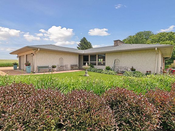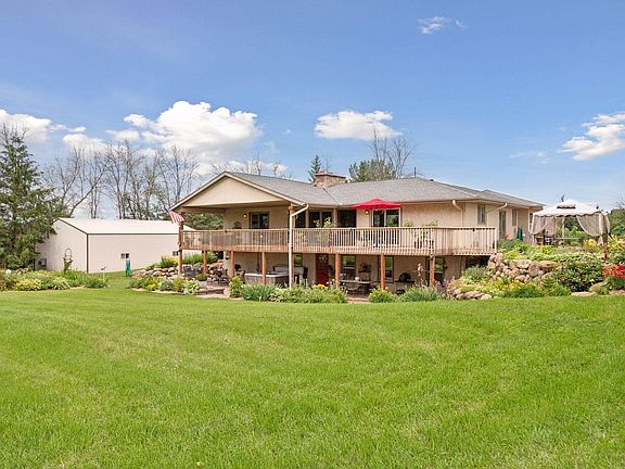 A truly magical place! The setting is incredible - relaxing, private, peaceful, beautiful. Wonderfully perched on 2.5 acres - perfect mix of gardens, grassy yard & a wooded backdrop. Second driveway to 50x30 heated & insulated workshop with concrete floor, power, & water. Custom, one-story walkout. Open concept, walls of windows, vaulted ceilings & wood beams! Main level primary & laundry. Updated & trendy baths! Kitchen features SS appls, gas cooktop, double oven, tile backsplash, soft-close, coffee bar. Newer roof, insulation, furnace, toilets. NEW: tile, refinished hardwoods, remodeled kitchen, paint, & more! Appreciate recessed lights, crown molding, 2 fireplaces, Kinetico, gutters, & Kasota stone on main fireplace. Entertain & relax in gardens, around firepit, on covered & uncovered deck, stone & paver patios, in gazebo & hot tub! Gardens galore, many different plants, providing something blooming at all times. Owners of 25 years. Convenient close-in location for country living!