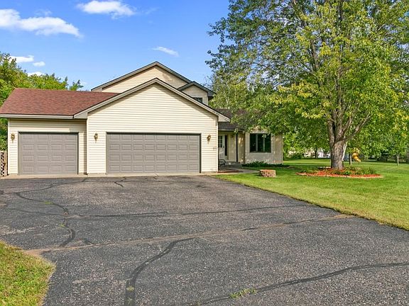 Great home on 1+ acre lot. Mature trees, 2 tiered deck, maintenance free exterior, 3 car garage. Home features new carpet, updated fixtures, spacious kitchen with breakfast bar, large dining area, LR with gas FP, 2nd living room or den. Three bedrooms up with walk in closets. Lower level ready for your finishing touches.