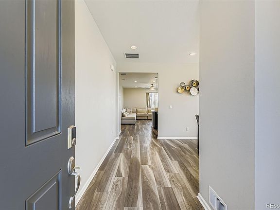Located on a corner homesite, this beautiful ranch in Prairie Farms features 2 beds, 2 baths, living room, dining room, kitchen and 2 car garage. Perfect for yourself or as an investment property. Pride of ownership shines throughout this charming home. An energy efficient furnace, central air conditioning and ceiling fans keep this home comfortable all year long. The many windows allow the natural light to cascade in - bright and cheerful. Adjacent to open space field. Neutral tones make it easy to picture yourself calling this one yours. The open kitchen is great for entertaining or family dinners and boasts a large slab granite island & counters and stainless steel appliances (gas range). Laminate flooring in the main living area, carpeting in the bedrooms. The separate dining area could be converted to an office or 3rd bedrooms. Close to dining, shopping, entertainment and other amenities including Buffalo Run Golf Course, Fronterra Park and Second Creek Open Space. Easy access to E-470, Tower Road and Reunion Parkway. Don't miss your opportunity. Welcome Home!