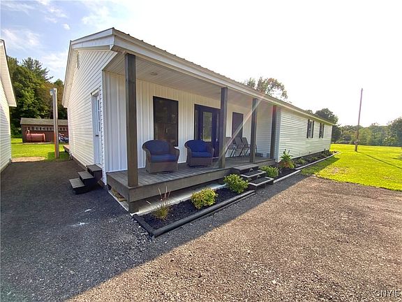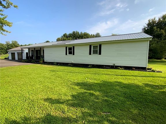 A charming ranch home set in a picturesque country backdrop, spanning just over an acre. It boasts a spacious open floor plan, complete with a fully equipped kitchen with granite counter tops featuring a two-tiered island, a wine bar, and a dining area. The master suite comes with its own bathroom, featuring a sizable walk-in tiled shower and a generous walk-in closet. Additionally, there are two more bedrooms and another full bathroom. A versatile office space or potential fourth bedroom, along with a new full bathroom featuring a walk-in tiled shower and a laundry room. Step outside to entertain and observe wildlife from the extensive deck. Completing the property is a brand-new two-stall garage,central air,generator,a front deck and a spacious asphalt driveway for added convenience. Call for your personal tour!