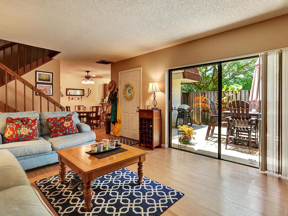 If you've been looking for space but want to be close to everything, don't miss this Palm Beach Gardens townhouse. There are 3 bedrooms, 2.5 bathrooms + a large patio. Just minutes to shopping like the Gardens Mall, supermarkets (Doris', Publix and Whole Foods), golf such as PGA National, and both I-95 and the turnpike, this townhouse has 2 bedrooms + 2 full bathrooms upstairs, a 3rd den/bedroom on the ground level, 1/2 bath as well as an oversized living room, open kitchen + washer/dryer in unit. Master bedroom has 2 large walk-in closets. Bright + airy, there are 3 sets of sliding glass doors which open to your private patio + both upstairs bedrooms have sliding glass doors. The community basketball, racquetball, tennis courts, playground + jogging trail.. Don't let this one get away!