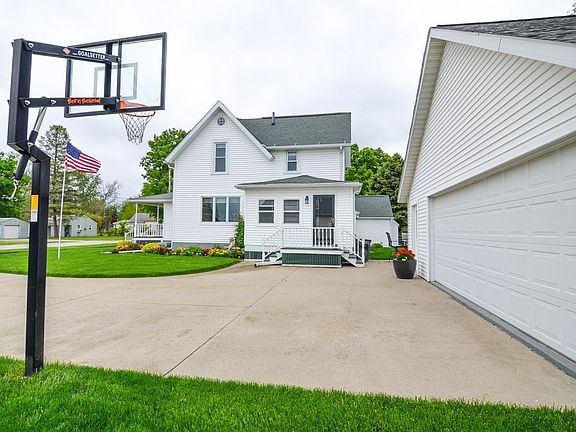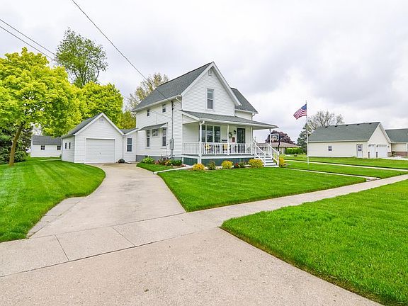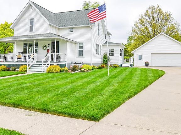 Exquisite early 20th century home in Grinnell's northeast neighborhood just a block from Ahrens Park. This beautiful home has a greatmix of preservation and modernization. Gorgeous hardwood floors and painted woodwork remain while the remodeled kitchen (2012) boasts customcabinets, stainless-steel appliances (2017) and is now open to formal dining room. An extensive remodel was done in early 2000s including bathroom,siding, windows, roof, and a large, heated detached two car garage (as well as an attached garage) and driveway. The main floor has a huge living room,main floor mud/laundry room, entry foyer, half bath, and quaint porch. Upstairs are 3 bedrooms, full bath and bonus room - could be a nursery or office.The master has vaulted ceilings and a double closet. Outside is an immaculate yard, gorgeous landscaping with perennials/established shrubs, andadjustable Goalsetter basketball hoop. Pride of ownership is apparent, and it shows in every aspect of this property.