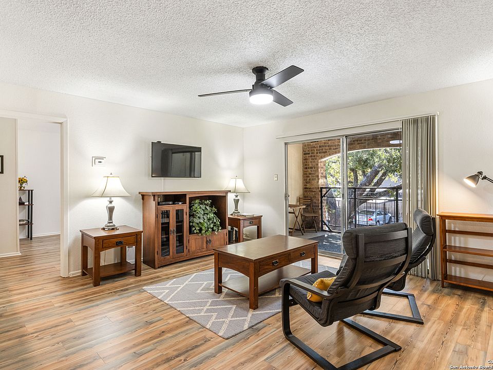 Welcome to your new home! This delightful one-bedroom condo perfectly balances comfort and convenience, featuring a bright and open floor plan designed for modern living. Fully furnished with a stylish study area, this unit is ideal for those who work from home or desire a peaceful nook to concentrate. Step outside onto your covered balcony-an inviting space to relax and unwind while enjoying the serene surroundings. The spacious master bedroom boasts an en-suite full bath, providing both privacy and comfort. You'll love the remarkable amenities this community has to offer, including two pristine pools and a rejuvenating spa-your personal oasis for leisure and relaxation. On-site laundry facilities designed for your convenience. Centrally located near the bustling Medical Center, this condo is in proximity to an array of shopping, dining options, and attractions such as UTSA, La Cantera, and downtown. With easy access to Loop 410 and I-10, your daily commute will be a breeze. Situated on the second level, this unit is easily accessible and has a history as a successful furnished monthly rental, making it a fantastic investment opportunity. Plus, your water bill is covered by the HOA, and you'll appreciate the low electricity costs, as part of the utility is provided by the condominium co-op. Don't miss out on this captivating gem in a prime location-an exquisite blend of comfort, convenience, and community awaits you!
