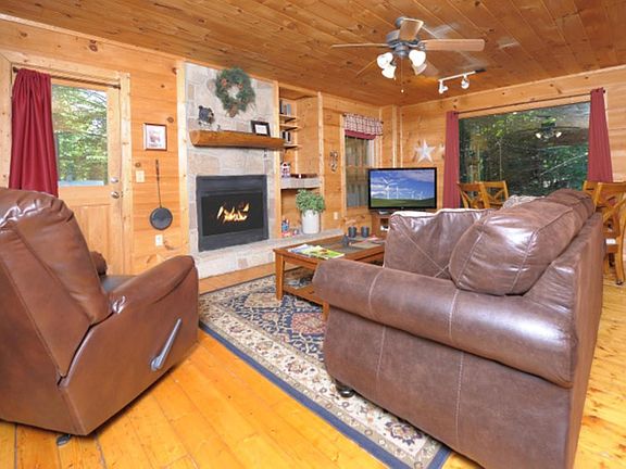 What a fabulous, unique cabin in Sky Harbor! This cabin comes fully furnished. Bask in the natural light coming through the large glass windows and cathedral ceiling as you walk through the door. Take a dip in the hot tub or relax by the gas log fireplace. There's even a WET BAR with a mini fridge in the living room! All WOOD FLOORS throughout this cabin. Easy access by the wrap around driveway freshly paved in November 2018. Propane tank is owned and will convey with the cabin; however, the monitor is leased through Heritage. The linens, towels, brown TV stand in the living room, and the items in the owner's closet do not convey. The cable box and accessories do not convey. All information obtained from the county tax record. All measurements and acreage are approximate. Buyer to verify all information.