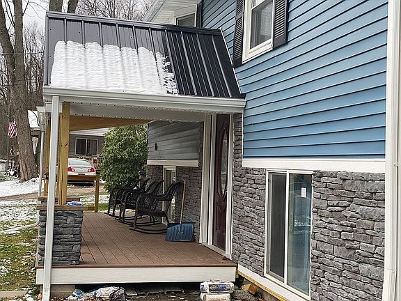 Nicely updated 3 bedroom, 2 bath home. The kitchen boasts plenty of cabinet storage and granite counter tops. The main bedroom features its own full bath. New flooring in the kitchen and lower family room. Additional heat source with a family room pellet stove. .New 200 amp electrical service and panel box. Vinyl siding, new metal roof, new exterior doors and vinyl replacement windows make this a low maintenance house. Covered front porch with a covered back deck for outside living. 2 car oversized garage with electric. Easy commute to Corning or Watkins Glen.