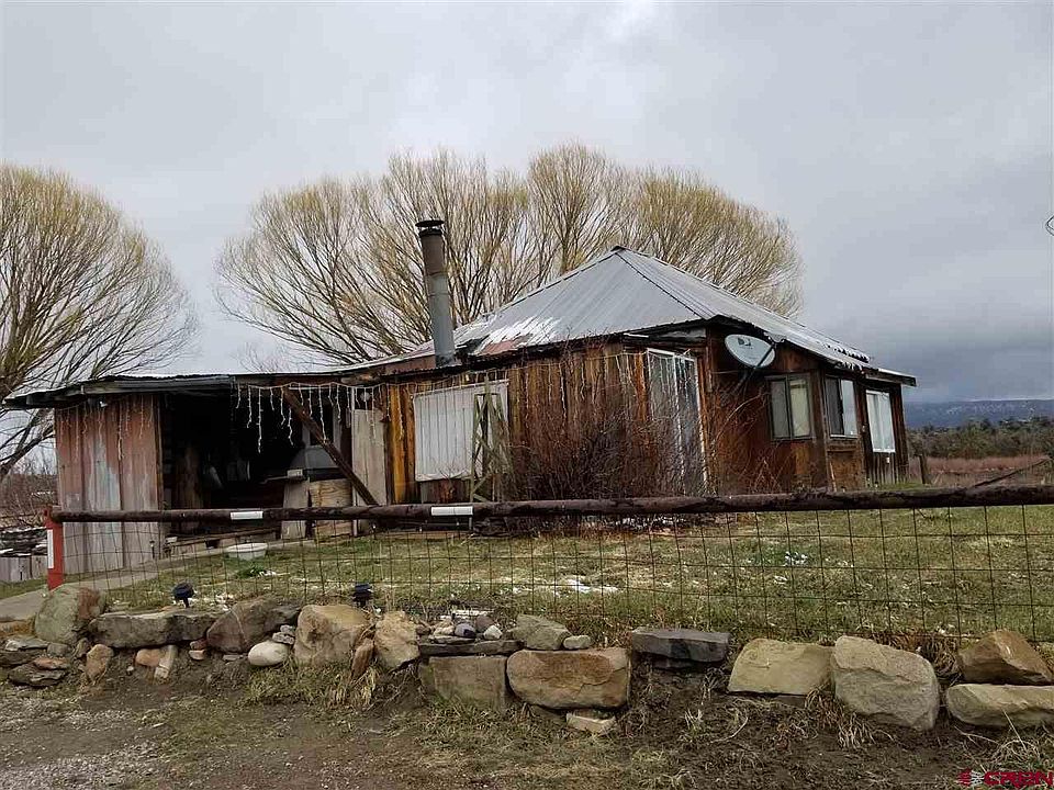Vintage 1904 cabin on 8.7 acres with views to the South, 8 shares of PRID irrigation water, 2 ponds and lots of potential. There are 2 rooms that do not qualify as bedrooms as there are no closets, plus another large room off the kitchen. The living room is large and has setup for wood burning or pellet stove. There is a dining area off the kitchen/living room and storage shed just outside the front door