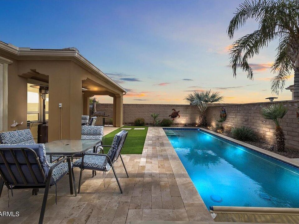 Living The Good Life! Resort Living & so much more. Seller to Pay $8500. Buyers Social Membership Joining Fee .Most Furniture & Decor will Convy. Fabulous Light & Bright home w/updated Cabinets, Backsplash & Interrior paint. Home has a private heated pool w/retractable cover, owned solar & south facing rear yard. Fabulous upgrades include central vac, Water Softener & R.O. System. True resort style living, Open Table Rated Clubhouse Restaurant, additional Palma Grill/Bar, Algarve Bar/Pool, Solaz Bar/Pool. John Lehmen designed course is Hole 19 rated, 4.5/5. Rated Pickle Ball Club ,Gym Spa, tennis, Art Studio, there are over 65 social clubs to join, art/autos to Yahcht Club, amazing spa, fitness center, 4 pools, 13 miles to Phoenix/Mesa Gateway Airport MUST SEE Great Home & Resort.