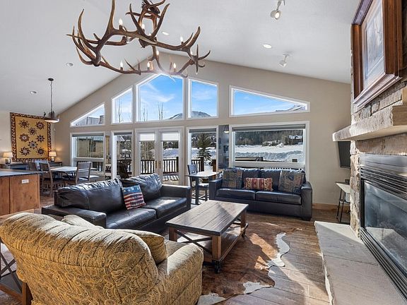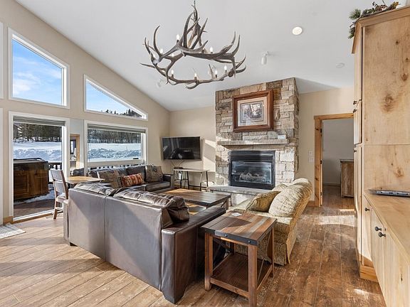Rare single-level living on the 7th hole of the Raven in one of the most sought after locations in Eagles Nest and under 2 million. Uninterrupted views of Red and Buffalo mountain flood the updated kitchen with Southwest facing light. Refined open style floorplan has been newly remodeled with maple cabinetry and leathered granite countertops. Soak in unparalleled views from the hot tub and entertain on the expansive deck or firepit area. Large land envelope creates endless potential.