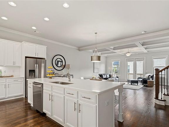 - Kitchen Features: Breakfast Bar, Eat-in Kitchen, View to Family Room, Stone Counters, Pantry Walk-In, Breakfast Room, Keeping Room, Cabinets White