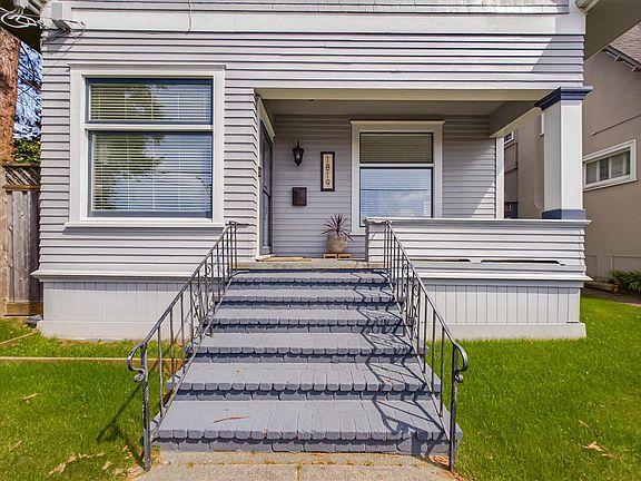 Accepted contingent offer with seller right to cancel with 60 days notice. This stately victorian era home with dutch colonial influence has all of the modern elegance, an electric fireplace warms the bright living room, a formal dining room flows to the well appointed kitchen with a bonus den alongside it. The upstairs holds ample sized bedrooms, one with a wall of windows and sun room running the length of it to adjoin to the primary suite. Updated Bathrooms with walk in glass stall shower and one with a claw foot tub! Located right on H St. prime real estate for the parade routes through town, the back yard boasts a new sun deck, enclosed by a four car garage/workshop!