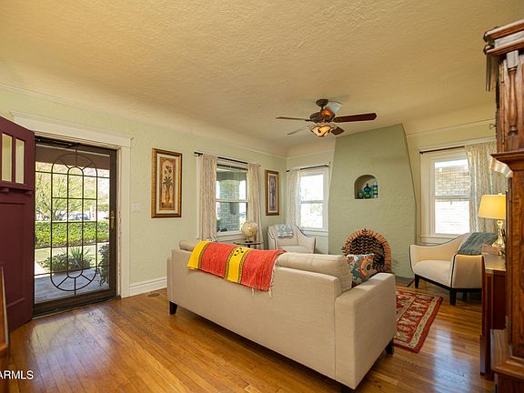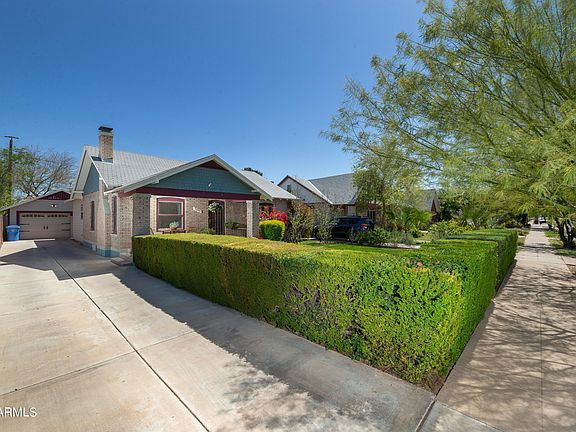 EVERYTHING YOU COULD WANT in a Historic Bungalow with modernized interior and infrastructure inside Coronado Historic District accompanies this adorable fairytale bungalow. The owners have taken incredible care of the home, and it shows! Entirely renovated & expanded by the prior owner, this was not a flip, but a fully permitted renovation and addition that was done with care, and which has only been improved through the years. From the mature privacy hedge in the front yard, shade trees, and well maintained landscaping, the charming front porch stoop, the solid wood craftsman style front door with custom breezeway screen, to the warmth filled interior, this home is overflowing with charm. The cozy living room features original oak hardwood floors, gas fireplace, and coved ceilings, and is a perfect landing room for guests, leading to a "flex space" on your way to the kitchen room that could be utilized as a dining room, office, or family room, complete with a wet bar perfect for entertaining and beverage service. The incredible 12 ft vaulted ceiling chef's kitchen features a Wolf range, a high powered upgraded vent hood, built-in Sub-Zero refrigerator, a Wolf wall oven, upgraded built-in microwave, large and bright skylights, a large breakfast bar eat-in kitchen island, upgraded alder solid wood cabinetry and hardware, and upgraded plumbing and lighting fixtures, included canned ceiling lighting, amplifying the openness. The giant master suite also has vaulted ceilings, and two additional skylights, an en-suite, recently remodeled master bath, with beautiful inlaid tile detailing, and dual sinks, an oversized walk-in closet, and light-filled, East-facing French doors that open to the patio dining and conversation area. The fully fenced and maturely landscaped rear yard space features a converted stone gas fireplace, latticed and romantically vined pergola and an outdoor kitchen space with a higher end built-in BBQ. The oversized one car garage (around 500 sf) with built- in storage, workbench and epoxy sealed floors house the laundry area (washer and dryer included!), and also includes additional two large double door exterior storage bays on the rear of the garage for all your yard maintenance needs. Additional features include an upgraded 200 AMP electrical panel, newer dual paned windows t/o, fresh paint t/o, good sized secondary bedrooms, and a whole house water softener system. This beauty sits on one of the most charmed- filled and peaceful blocks in all of Coronado Historic, and is just walking distance to popular restaurants and moments from the Oak St bike path, and two blocks to Banner University Medical Center, and 5 min to downtown Phoenix. Don't miss this one of a kind, modernized Bungalow beauty in the heart of Coronado Historic District, a place where community is available and welcoming!