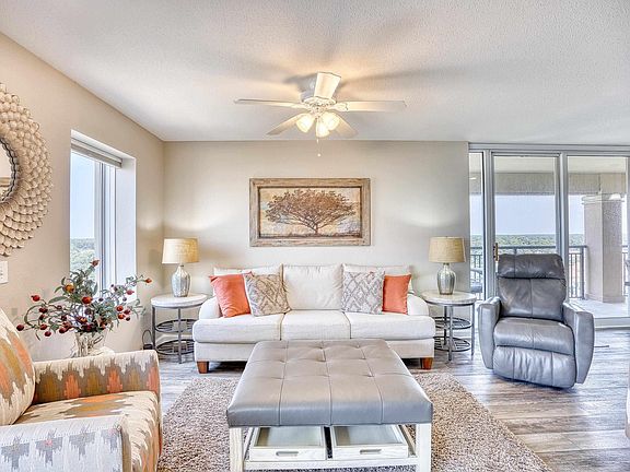 Beautiful 3-bedroom, 3-bath END UNIT with ocean/lake and golf course views from this luxury condo in Tilghman Beach and Golf Resort, North Myrtle Beach's renowned year-round luxury high rise. These units rarely become available, the largest floor plan in the building with two oversized balconies with extra privacy being an end unit. What sets this end unit out over and above the rest of the building is the VIEWS from the two balconies; the Southern Coast line of the beautiful Atlantic Ocean, as well as the pond/lake behind the building and views of the Surf Golf and Beach Club golf course. Nicely upgraded and being sold furnished to include Newer Whirlpool Gold Series Stainless Steel appliances in the kitchen; which includes a double convection oven. Luxury Vinyl Flooring in living, dining and all bedrooms. And easy to care for tile floors in the kitchen, baths and foyer. Granite counter tops and quality cabinetry. All walls and trim have been painted with up-to-date colors. New blinds/window treatments throughout with black outs in the living/dining/master bedroom. Shall we continue with the upgrades; all new accessories and décor throughout the condo to include, lamps, TVs in all bedrooms, pictures, full length mirrors in bedrooms and all new furniture. Closets have been customized and/or shelving added for extra storage. When you view the condo, you may decide to keep for yourself as a second home or primary residence. But investors will be interested as well, as the property is very well known for the maintenance of the property and grand reviews from renters. Because of the upgrades this as a "Platinum" classified unit rents at a higher rate than a base unit. The property features an array of amenities; outdoor include a large sunning patio, lazy river, a crystal-clear swimming pool, children's water/play area, and hot tub. Indoor amenities include a heated pool, jacuzzi, sauna, exercise room, lounging area, and a seasonal cafe. With the highlight being the beautiful Atlantic Ocean and popular Cherry Grove Beach are just steps away from the front lobby entrance and accessed by a city-operated crosswalk leading to a main beach entrance. Measurements were obtained from builder’s plans, to be verified by buyer. Hurry this one will not last long!