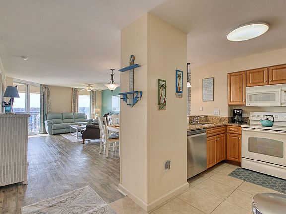 Don't miss this one! Rare opportunity to own the largest floor plan in Tilghman Beach and Golf, one of North Myrtle Beach's most renowned luxury high rise resorts. The views from this corner unit are absolutely unparalleled. Miles and miles of the Atlantic coastline can be seen from both the living room and Master Bedroom or step onto the expansive balcony to hear the rhythm of the waves. In addition to the balcony overlooking the ocean these hard-to-find corner units also offer a generous sized balcony accessed from the dining room that overlooks the Surf Golf Course with a beautiful lake and fountain. Nicely updated and being sold fully furnished you will love the easy-care tile flooring in the foyer, kitchen and all 3 bathrooms as well as granite counter tops and quality cabinetry. The living room has luxury vinyl plank flooring and is tastefully furnished with quality leather reclining sofa and love seat, 65 inch flat screen television, sound bar, and DVD player. The split bedroom plan offers great privacy for both owners and guest. All bedrooms offer comfortable bedding (king size mattress in master), flat screen TVs and nicely sized closets. The largest of the guest bedrooms also has amazing views of the lake and fountain! These units are a great investment opportunity with an onsite management company that can handle the entire process for you. Tilghman Beach and Golf has outstanding amenities including a large outdoor pool with kid zone, lazy river, hot tub, sunbathing deck, inside heated pool, jacuzzi, sauna, exercise room, seasonal cafe and owner allowed golf cart parking. Perfectly located and just steps away from everything fun to do in North Myrtle Beach.... the only thing missing is you!