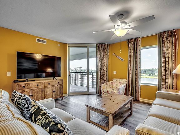 Gorgeous, beautifully furnished and decorated, nicely kept and well cared for, 3 bedroom, 3 bathroom spacious condo just across the street from the beach at the Tilghman Beach & Golf Resort in North Myrtle Beach. This 6th floor condo has amazing lake and golf course views, a large balcony, LVP flooring and tile throughout, nice fixtures, brand new upgraded Stainless Steel appliances, granite countertops in kitchen and bathrooms, new ceiling fans throughout, and easy access to the parking garage. The resort offers a Mediterranean Style Design, Indoor and Outdoor Pools and Hot Tubs, Children’s Water Area, Lazy River, Restaurant/Grill, Beautiful Atrium, Wireless/Wired Internet Access, 4 Levels of Parking, Security, Fitness Center, On Site Rentals, and low HOA dues.