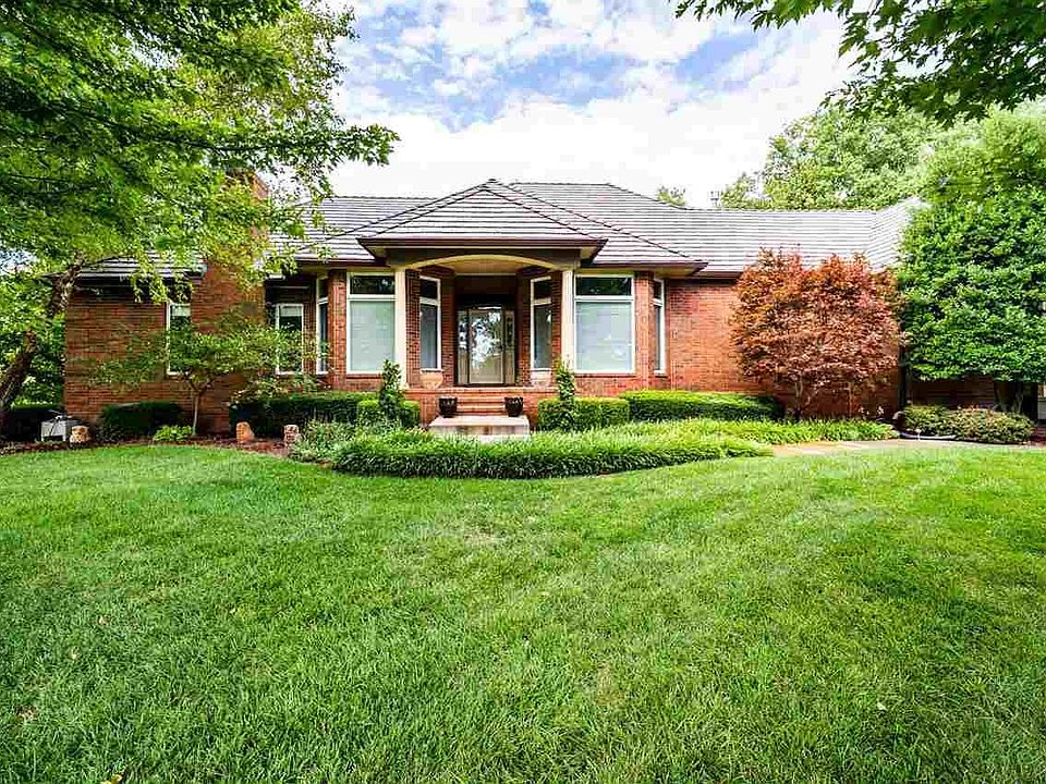 Enjoy a lake view in the front of your home and in the back. This home is located on a specular large lot in Wilson Estates. A wide-open ranch, this home is loaded with amenities that make this home one in a million. A spacious hearth room and kitchen offer great space for entertaining. Off the hearth room, is a covered deck where you can enjoy looking at the lake, the swimming pool, rambling creek and waterfall. Attached to the master bedroom is large sitting room, ensuite bath, walk-in closet and view of the lake and large private lot. You will be the ''talk of the town" with this custom western bar which is a great for parties or unwinding from a busy day. Walk out of the lower level family room to a salt water pool, with electric cover, and lots of patio space for enjoying the outdoors. Wilson Estates is located right behind Bradley Fair so you can enjoy Wichita's finest shopping and dining. Wilson Estates has more than 30 acres of green space, walking paths and lakes. This unique ranch offers so many possibilities with the master bedroom on the main level and three bedrooms downstairs. If you are wanting to feel like you are always on vacation, this is the home that offers total seclusion from the hustle of daily life. Features and upgrades All brick ranch, lake in front and in back of the home on nearly 3/4 of an acre, with a lake view from the front and the back of the home. Stainless appliances and granite in the kitchen Upgraded solid wood doors throughout Crown molding on the main floor High ceilings on the main floor All window coverings included Large sitting room, with fireplace, off of the large master suite Formal dining room Large pantry Spacious hearth room with wood floors, fireplace which overlooks pool and lake Wood floors Lower level Brand new carpet throughout lower level Custom bar on the lower level, with sink, beverage cooler, ice maker and microwave Wood pellet stove Two brand new 50 gallon hot water heaters Plenty of storage Walkout to the pool, patio and lake Outside Walkout to backyard pool and lake; from either the main floor deck or lower level. New synthetic deck Heated salt water pool, with electric cover New stone patio around the pool Nearly new 50 year DaVinci roof and new gutters Covered patio Saltwater pool Waterfall in the back yard 1819 N. Red Brush, The Preakness in Wilson Estates Enjoy a lake view in the front of your home and in the back. This home is located on a specular large lot in Wilson Estates. A wide-open ranch, this home is loaded with amenities that make this home one in a million. A spacious hearth room and kitchen offer great space for entertaining. Off the hearth room, is a covered deck where you can enjoy looking at the lake, the swimming pool, rambling creek and waterfall. Attached to the master bedroom is large sitting room, ensuite bath, walk-in closet and view of the lake and large private lot. You will be the ''talk of the town" with this custom western bar which is a great for parties or unwinding from a busy day. Walk out of the lower level family room to a salt water pool, with electric cover, and lots of patio space for enjoying the out
