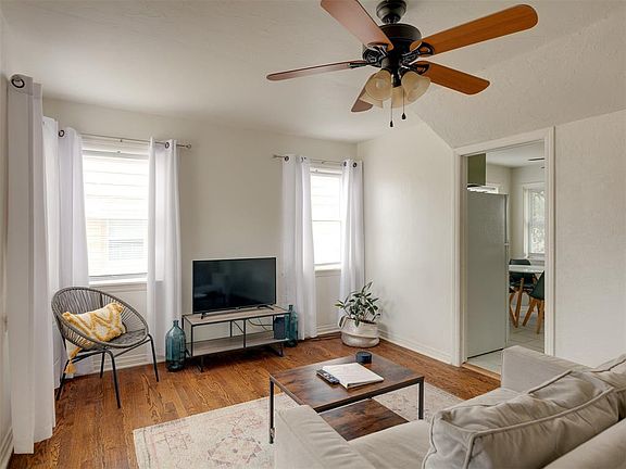 This remodeled, urban core Fourplex is a great turnkey investment or househacking opportunity with room for value add. The front building is a bottom floor and top floor duplex with 2 bed 1 bath apartments containing 912 sq ft each for a total of 1824 sq ft. The back building has four garages across the bottom with two identical 430 sq ft apartments above. The entire property was remodeled in 2018 including: electrical service upgrade, new panels, new HVAC, plumbing repairs, paint, tile, countertops, appliances, windows, and adding two sets of laundry. The laundry for 3 of the units is shared in the garage and the upstairs duplex unit has a combo W&D in kitchen. Rents are currently $1300, $1250 (vacant), $895, $825. The back unit rents have increased by $275 per month in just 5 years, and are currently under market rent due to renewing tenants. The location is directly south of OCU campus in the Gatewood UCD neighborhood. You are 6 blocks north of the Plaza District where you can enjoy local restaurants, shops, events and entertainment. You can also get to Downtown, Paseo, Western Ave, Midtown quickly without need for highways. The front duplex was a successful Airbnb between 2019 and 2022. Listing Agent is partial owner.
