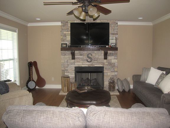 Situated on a nicely landscaped acre lot, from the front porch you have a commanding view of the countryside. You will love the spacious rooms and the warm color palette chosen for each room. A brief overview of this beautifully decorated home, the main floor offers: GREAT ROOM: Step inside the front door, the warm great room greets you with hand scraped hardwood flooring, stone fireplace with an oak mantle, stone hearth and gas logs, staircase with an oak hand rail, ceiling fan and wrought iron spindles. KITCHEN: A large eat-in kitchen boasts glazed maple cabinetry, pantry with slide out shelving, granite counter tops, hand scraped hardwood flooring, all stainless steel appliances remain, coat closet, crown molding access to garage, and off the dining area a double door opens to the patio. LAUNDRY ROOM: Tile flooring and glazed maple cabinetry. HALF BATH: Hand scraped hardwood flooring and pedestal sink. MASTER BEDROOM: Carpet, double tray ceiling, crown molding floor to ceiling double windows, ceiling fan. MASTER BATH: Tile flooring, double vanity, glazed maple cabinetry, jetted tub, separate shower, walk-in closet with organizers. UPSTAIRS BEDROOM 2: Carpet, double reach-in closet, ceiling fan, walk-in access to attic. BEDROOM 3: Carpet, window dormer, ceiling fan, walk-in closet. BONUS ROOM: The perfect man cave! Carpet, duel window dormers, ceiling fan, walk-in attic access. HALL BATH: Tile flooring, double vanity, glazed maple cabinetry, shower/tub combination, linen closet, plantation blinds