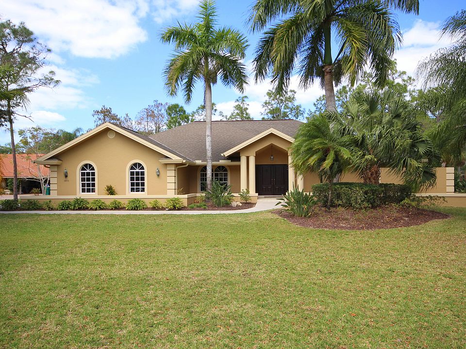 This beautiful North Naples home is situated on a half acre corner lot and has been completely remodeled inside and out. The spacious kitchen features Kitchen Aid brand appliances, granite countertops and 42 inch custom cherry cabinets. The home features large rooms, ample closet space and an open floor plan with porcelain tile throughout. The large bathrooms include a jacuzzi tub (guest), walk in shower with body sprays and double sink vanity (master). The heated, saltwater pool was resurfaced and all equipment replaced in 2013. The travertine pool deck is partially covered and has plenty of room for outdoor seating. A great house for entertaining inside, by the pool or in the huge backyard!
