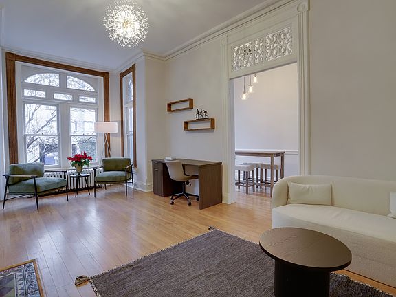 Experience the charm of historic D.C. in this spacious, beautifully furnished 1-bedroom, 1-bathroom apartment, showcasing timeless vintage features. This home is ideally situated in vibrant Dupont Circle. Featuring high ceilings and classic decor with modern appliances blending historic elegance with modern comfort. Enjoy a fully equipped kitchen and the highest quality sheets on the queen sized bed, and radiator heating, ensuring a comfortable stay whether you're here for work or leisure. This convenient home is situated in the vibrant and historic Dupont Circle, characterized by its tree-lined streets, charming historic row houses, and a lively atmosphere. It offers a diverse array of dining, shopping, and entertainment options, with numerous cafes, restaurants, boutiques, and nightlife spots. Take a short stroll for less than five minutes to the Kramers Book Store, where you can grab a coffee or a different beverage while you browse what is on the shelves. Have a reflective moment viewing the Philips Collection, which is less than half a mile away. You'll be immersed in rich culture as this home is a short walk from several embassies and close to the Dupont Metro, just a short ride to the National Mall. There is a shared washer and dryer in the common space. For stays between 180 - 364 days, there is a security deposit in the amount of half of the monthly rent, which is due at time of lease signing. For stays 365 days or more, there is a security deposit in the amount of one full month of rent, which is due at time of lease signing. 31+ nights, all utilities and Wi-Fi included. Stays under 91 are nights subject to a 15.95% lodging and sales tax. There is a $45 application fee and background screening required. This home is not pet friendly.