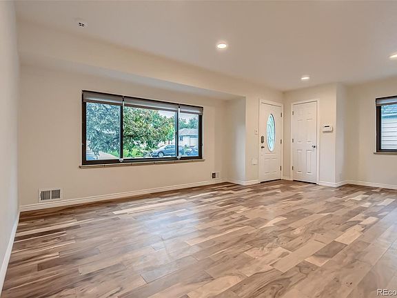 Located on a quiet street in Virginia Village, this home was completely remodeled just a few years ago. Acacia hardwood floors expand throughout the entire main level. The main level features 2 bedrooms and 2 remodeled bathrooms. The master bedroom has an amazing en suite that includes double sinks, free standing tub, and gorgeous shower. The open concept kitchen features 42 inch upper cabinets, slab granite, gas range and plenty of storage. The basement has a nice size rec room, 2 additional bedrooms, brand new carpet, a beautiful remodeled bathroom, and huge laundry area with plenty of room for extra storage. The exterior of the home is very low maintenance with metal siding and stacked stone, new sod in the front and back, full sprinkler system with drip line already installed. Additional new updates include: double pane windows, AC unit, and radon mitigation system. You simply can't beat this location. Whether you're going downtown, to Cherry Creek, or DTC they are all less than 15 minutes.