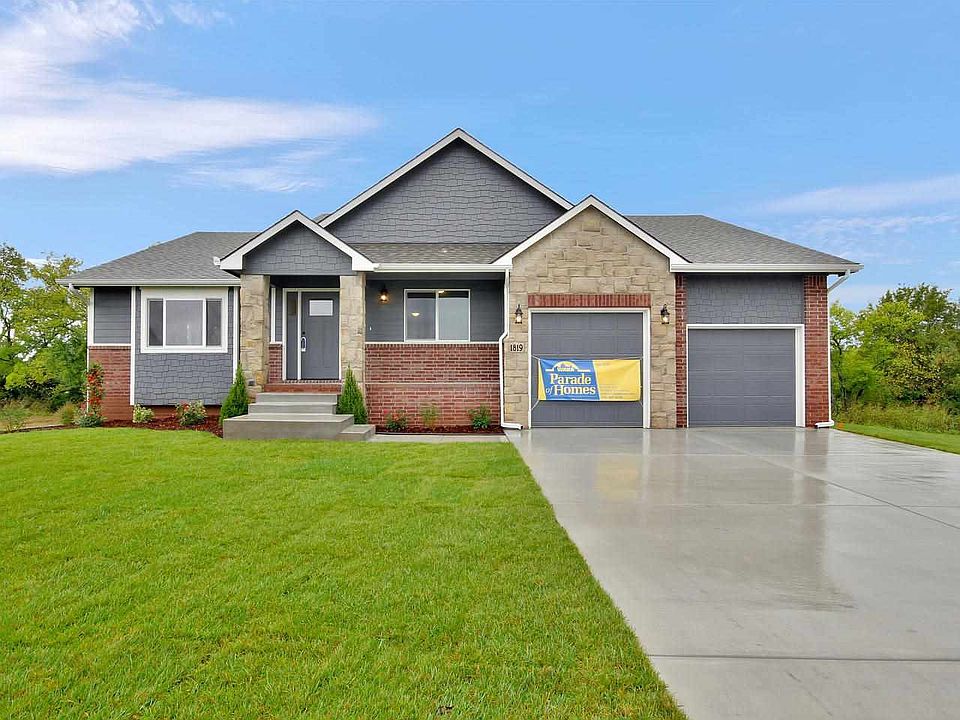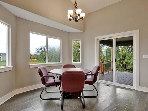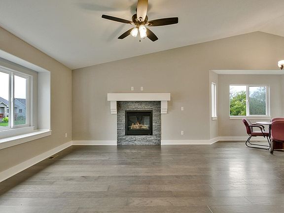 Beautiful new construction walk-out walk-up ranch home by Relph Construction in Whispering Lakes, backs up to tree row! Huge 4 car tandem garage could fit 4 compact cars, or could hold a boat and trailer. Granite or quartz on all counter tops, open floor plan, hidden walk-in pantry, basement wet bar, and a covered deck over a walk-out patio. Master bath has huge shower room with seat, and a full wall of storage. Price includes irrigation well, sprinkler system and landscaping! Low traffic in secluded neighborhood with community pool, and nature tails with three lakes to enjoy, fishing, but close to HWY 96 or Andover Dillon's Marketplace and YMCA.