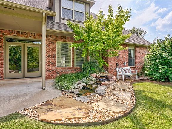 This beautiful home is on a huge lot in a gated community. You will not want to leave the peaceful backyard with an open deck, water feature, garden and covered patio with french doors leading out from both the breakfast area and master suite,. It backs to a heavily forested creek making for a tranquil retreat. Split floorplan. Secondary bedrooms share a Jack and Jill bathroom with two separtate vanity areas. Bonus room upstairs has endless possibilities with its own closet and full bath. Office area downstairs. Tons of storage. Storm shelter in garage floor.