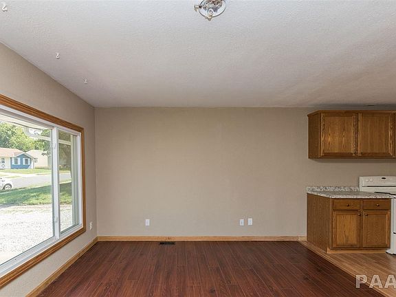 Open concept design! This 3 bedroom ranch is situated right in the heart of Pekin and is close to shopping and restaurants! Many updates including new cabinetry in the kitchen w/ new countertops and tile backsplash. NEW carpet in all 3 bedrooms. Updated landscaping. Fenced in yard and oversized 2 stall garage. Come take a look today!