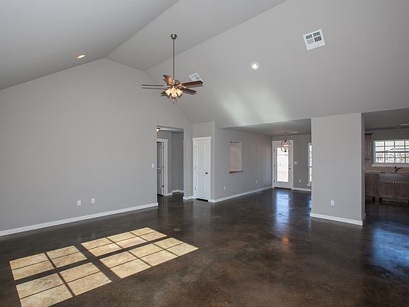 Rare opportunity! NEW Construction. 3 BDRMS w/split floor plan, 2 bath, 2 car garage. Open plan w/vaulted living room. Granite counters in kitchen with a large eating bar, knotty alder, stainless appliances, refrigerator, fenced, stained concrete floors. Minutes to Tulsa Hills Shopping.