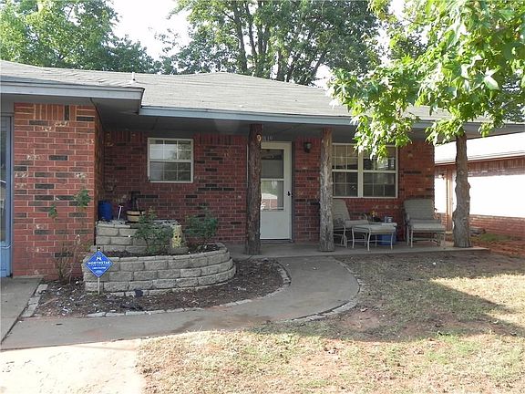 Great brick home with updated kitchen/dining. Newer tile enhances the spacious and open dining room and kitchen. The rustic kitchen features 2 sink areas, great island/bar with concrete countertops, rustic wood trim and cabinets, and a spacious pantry large enough for a small freezer. Newer windows in the dining room allow for great light. The original garage has been transformed into a wonderful living area with fireplace and a built-in nook for television. All 3 bedrooms are off the hallway with the hall bath being across from the first bedroom. The 2nd bedroom has some great built-in cabinets. The master bedroom also has a built-in cabinet and has a 1/2 bath with updated sink. Sellers will offer $1000 carpet allowance with a reasonable offer. The back patio is a great space for grilling and enjoying Oklahoma evenings. The property has both wood and chain fencing. The detached 2 car garage is behind the house and accessed from the alley and back yard. The roof was replaced in 2016.