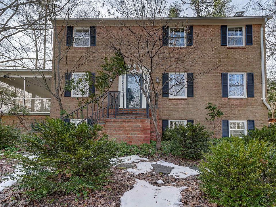 Don't miss this amazing updated brick home in the popular Rutledge community of Charlottesville. This light-filled home features refinished hardwood floors throughout the main level, an updated kitchen and renovated bathrooms! Nestled on a large wooded lot this home feels like a quiet escape in the trees. As you enter the home, a large living room to the right features a gas fireplace with brick hearth flanked by two beechwood bookcases. The living room flows into the open dining room/kitchen that is great for entertaining. The remodeled kitchen features granite counters, with an eat-in seating area and custom cherry cabinets. Work from home in the light-filled study with Ting Internet. Upstairs the large primary suite features a laundry chute to the basement, walk in closet, and custom designed private ensuite bathroom with two sinks, ash vanity, and frameless glass shower. Two additional bedrooms share a full hall bathroom on the second floor. The lower level boasts a large rec room with luxury vinyl flooring and a second gas fireplace. Large unfinished storage space with laundry also makes a wonderful workshop. Enjoy outdoor entertaining on the screened porch and relax in the hot tub under the stars!